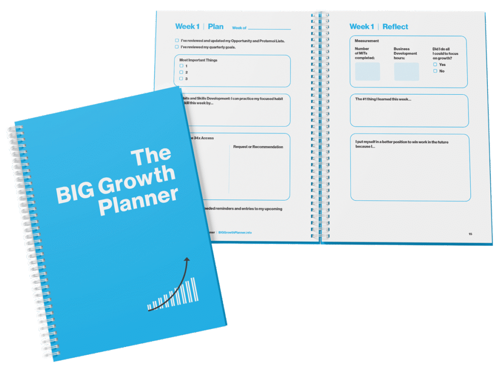 The BIG Growth Planner is your step-by-step companion for building business development habits that actually stick.